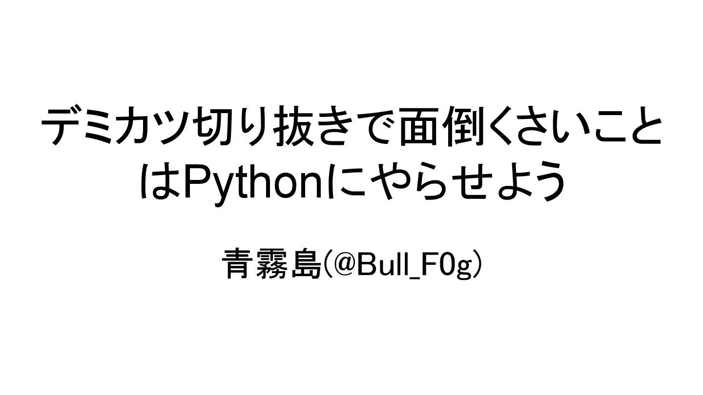デミカツ切り抜きで面倒くさいこと はPythonにやらせよう 青霧島(@Bull_F0g)