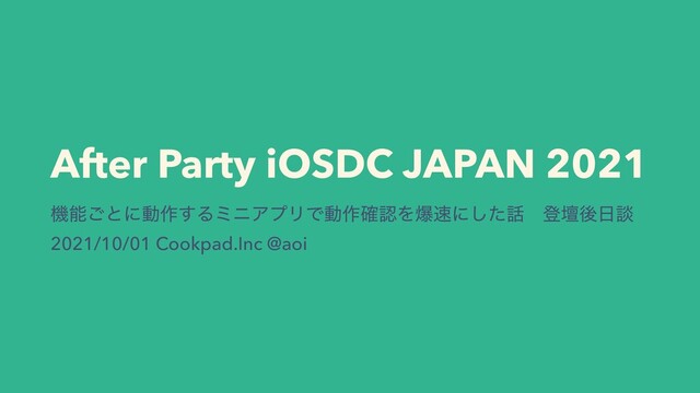 After Party iOSDC JAPAN 2021 ػೳ͝ͱʹಈ࡞͢ΔϛχΞϓϦͰಈ࡞֬ೝΛരʹͨ͠ɹొஃޙஊ 2021/10/01 Cookpad.Inc @aoi