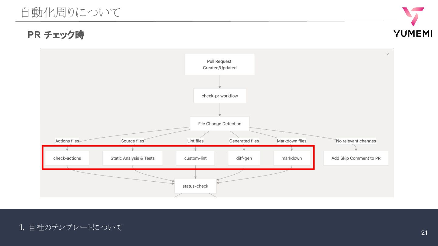1. 自社のテンプレートについて 自動化周りについて PR チェック時 21