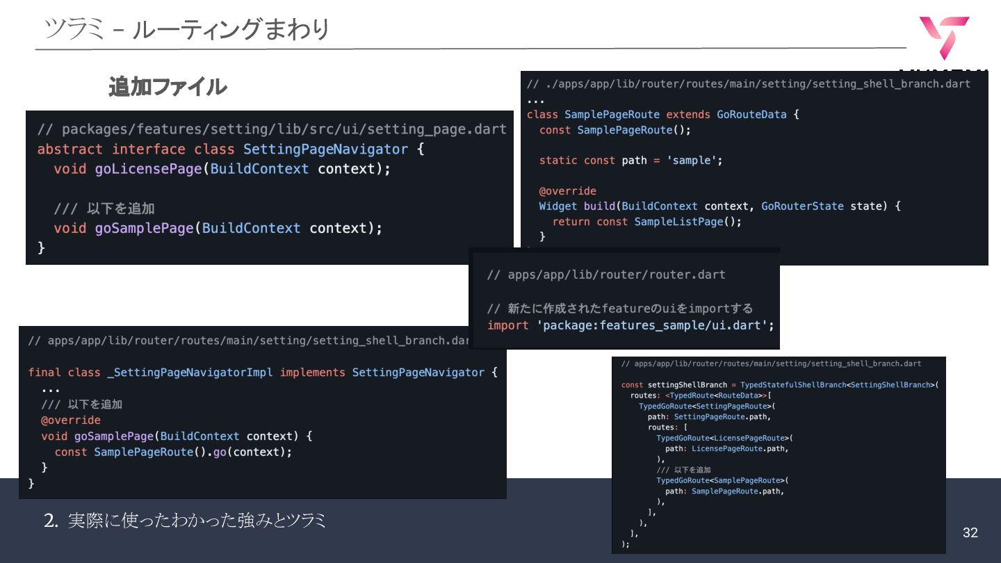 2. 実際に使ったわかった強みとツラミ ツラミ - ルーティングまわり 追加ファイル 32