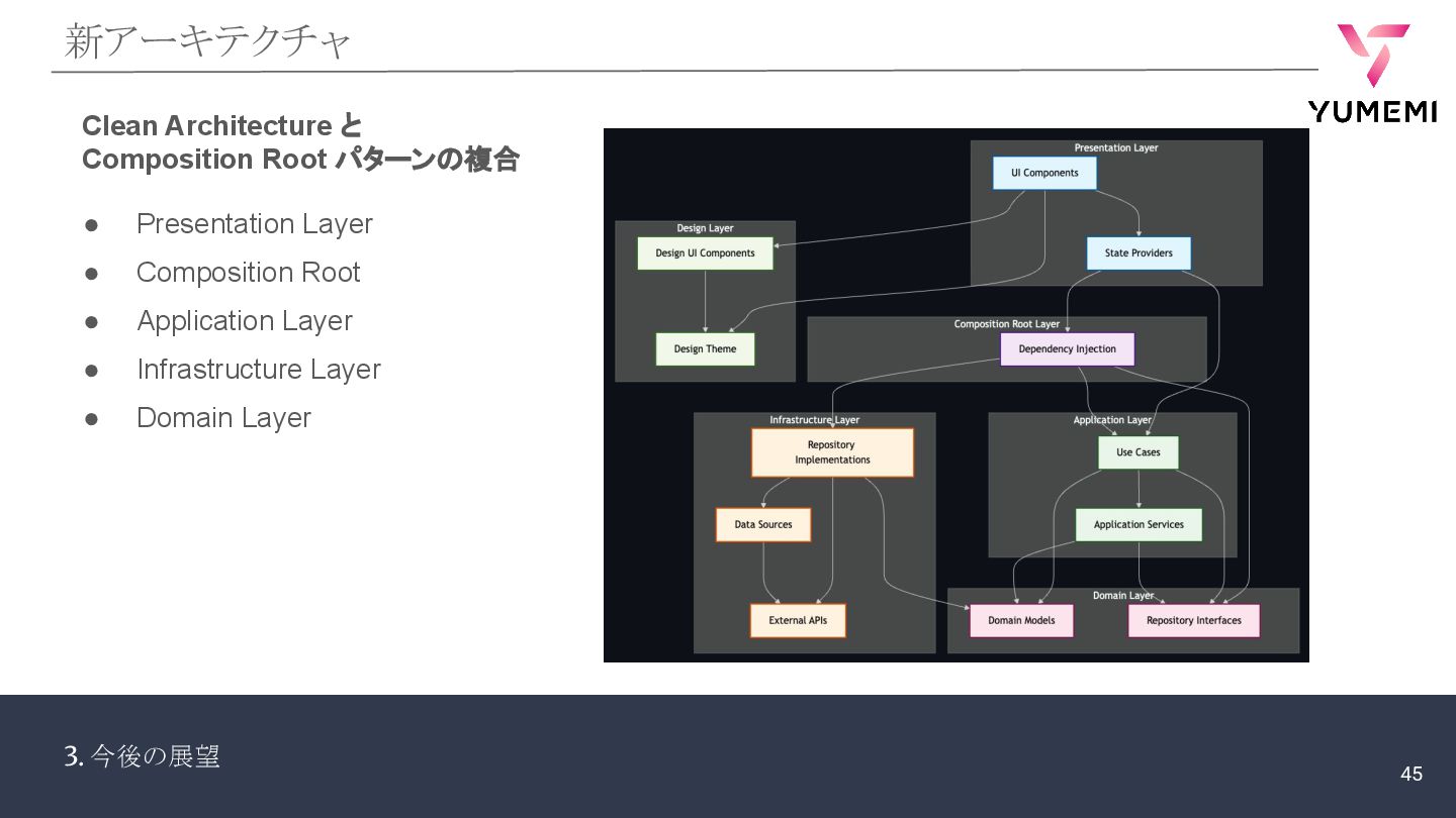 3. 今後の展望 新アーキテクチャ • Presentation Layer • Composition Root •