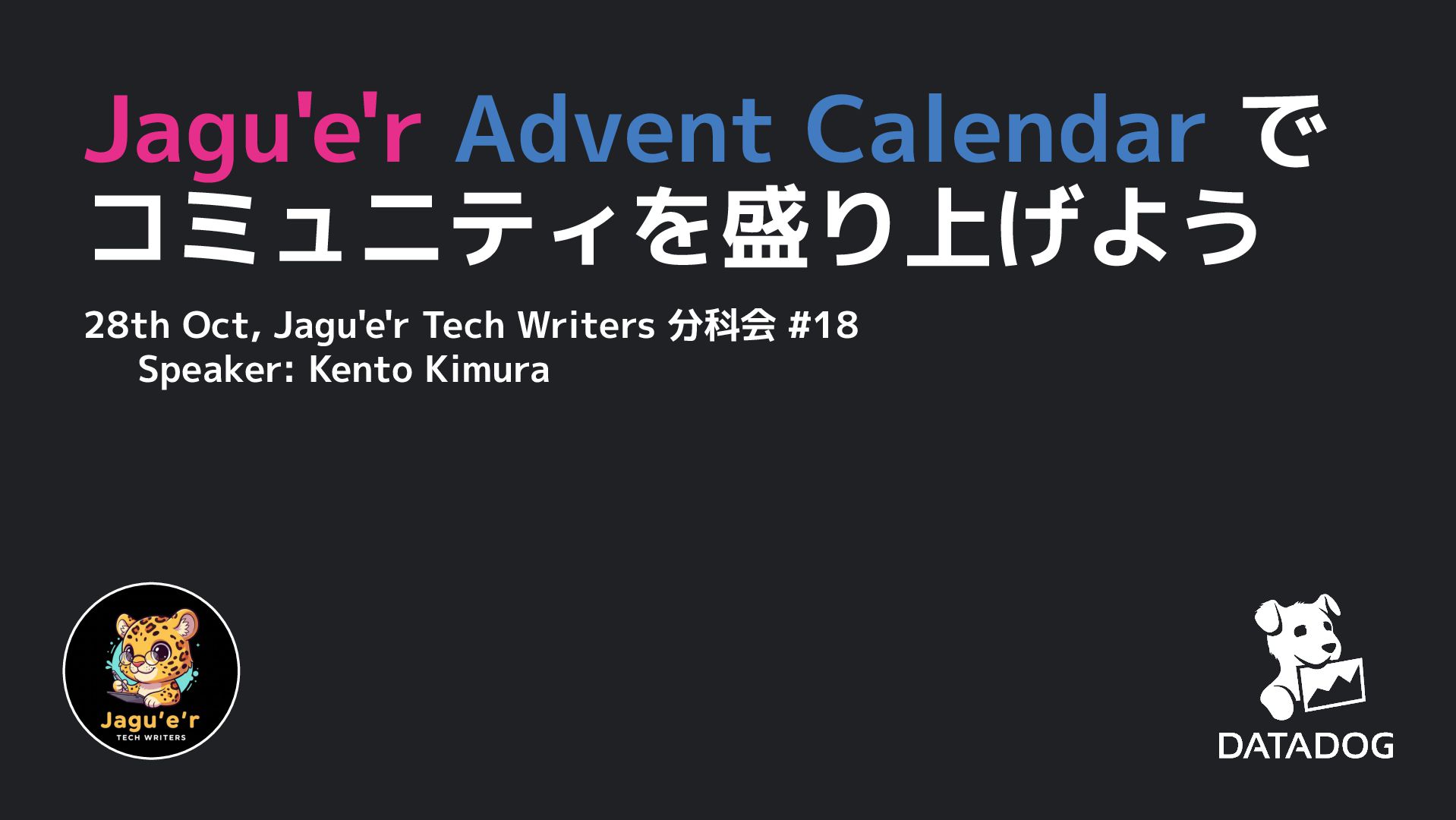 Jagu'e'r Advent Calendar で コミュニティを盛り上げよう 28th Oct, Jagu'e'r Tech Writers