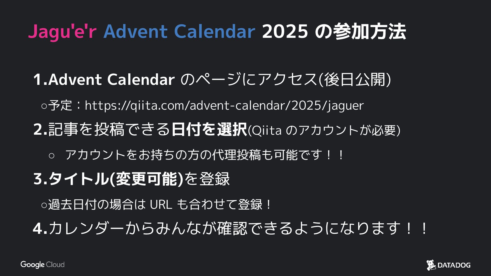 Jagu'e'r Advent Calendar でコミュニティを盛り上げよう / Join ...