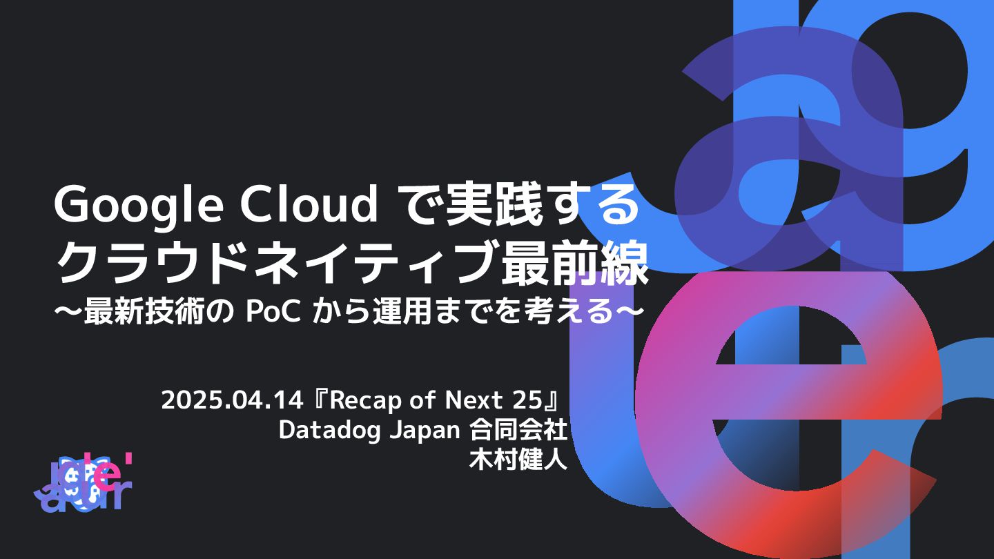 & recommendations(GA) • Multi-Cluster Orchestrator(Preview) • GKE Inference Gateway(Preview) • Container-optimized Autopilot(Roadmap) Other all Kubernetes updates Cloud Run services/jobs/functions • GPU for Cloud Run services(GA) • Cloud Run IAP built-in(Preview) • Gemini Code Assist in Cloud Run(Preview) • Cloud Run Threat Detection(Preview) • Cloud Run jobs support ◦ VPC Egress(GA), Multi-container(GA), GPU(Preview) Cloud Run Worker Pools クラウドネイティブ on Google Cloud - updates!!