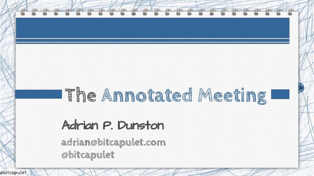 All this in a fun and fast-moving Talk with stories to illustrate. Don’t let your meeting-time go to waste; learn the annotated meeting today!