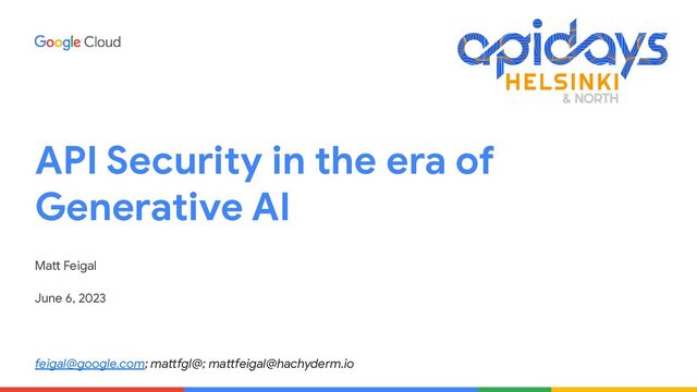 apidays Helsinki & North 2023 - API Security in the era of Generative AI, Matt Feigal, Google Cloud Sweden