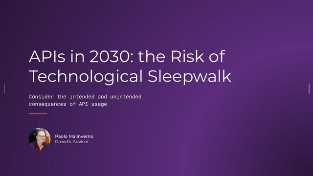 Keynote 2: APIs in 2030: The Risk of Technological Sleepwalk