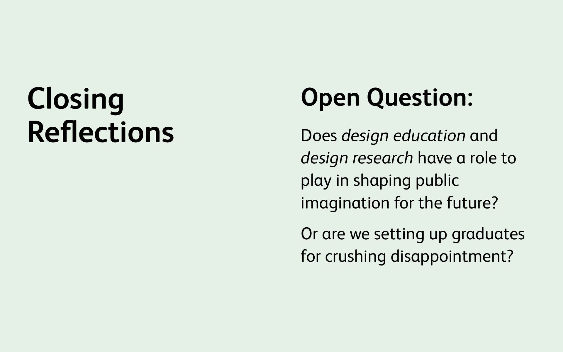have a role to play in shaping public imagination for the future? Or are we setting up graduates for crushing disappointment?