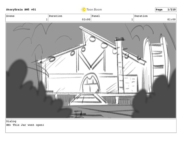 Scene 1 Duration 03:00 Panel 3 Duration 01:00 Dialog MM: