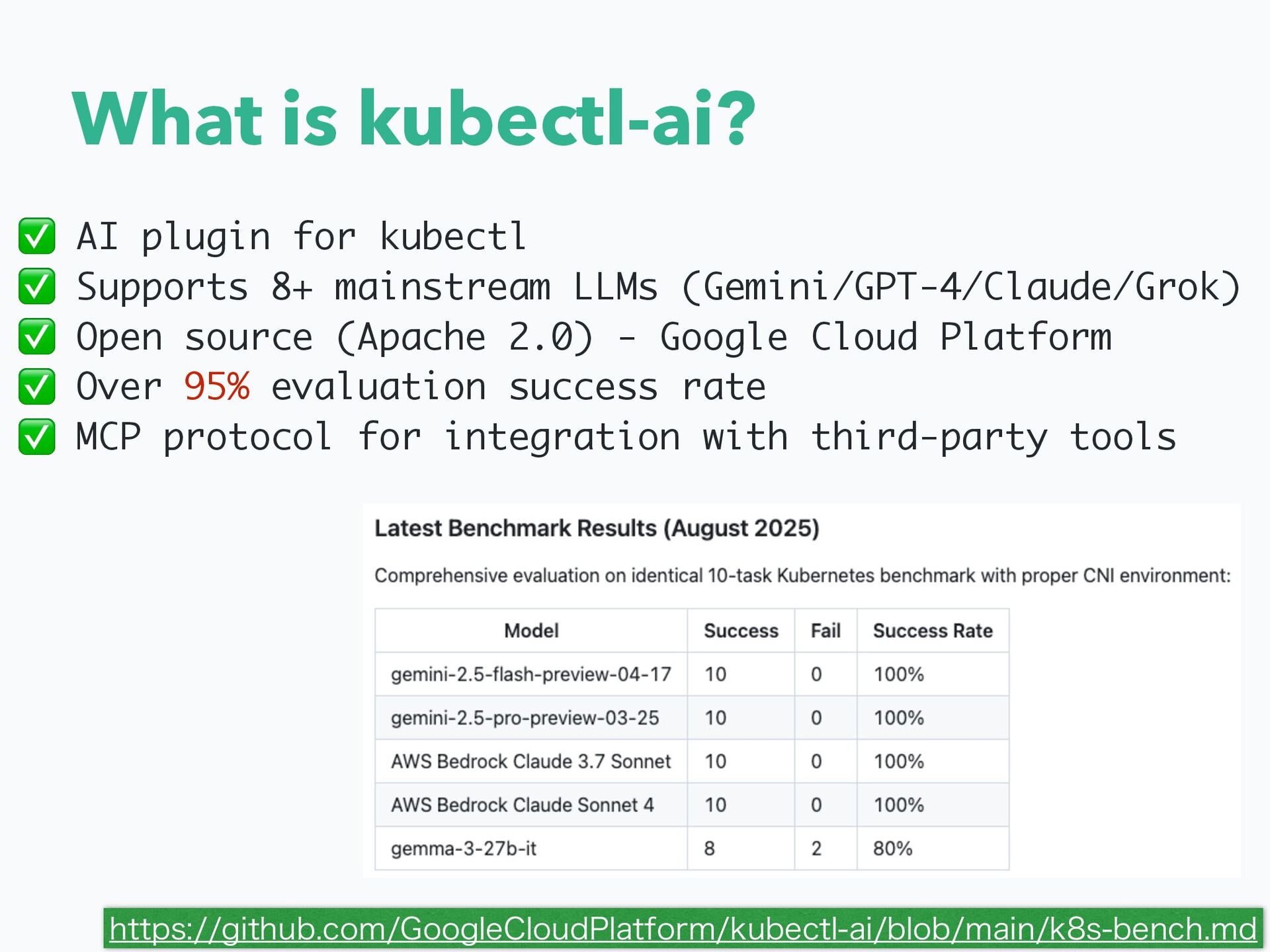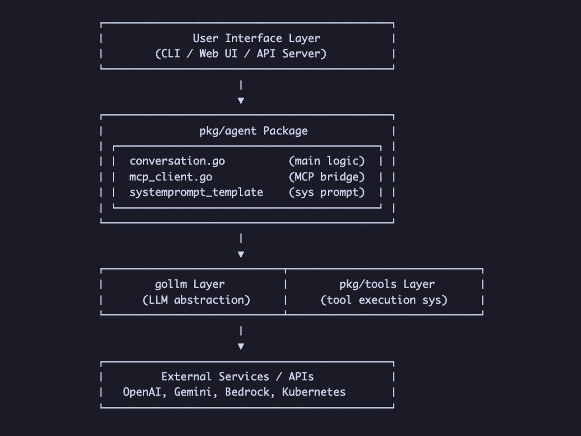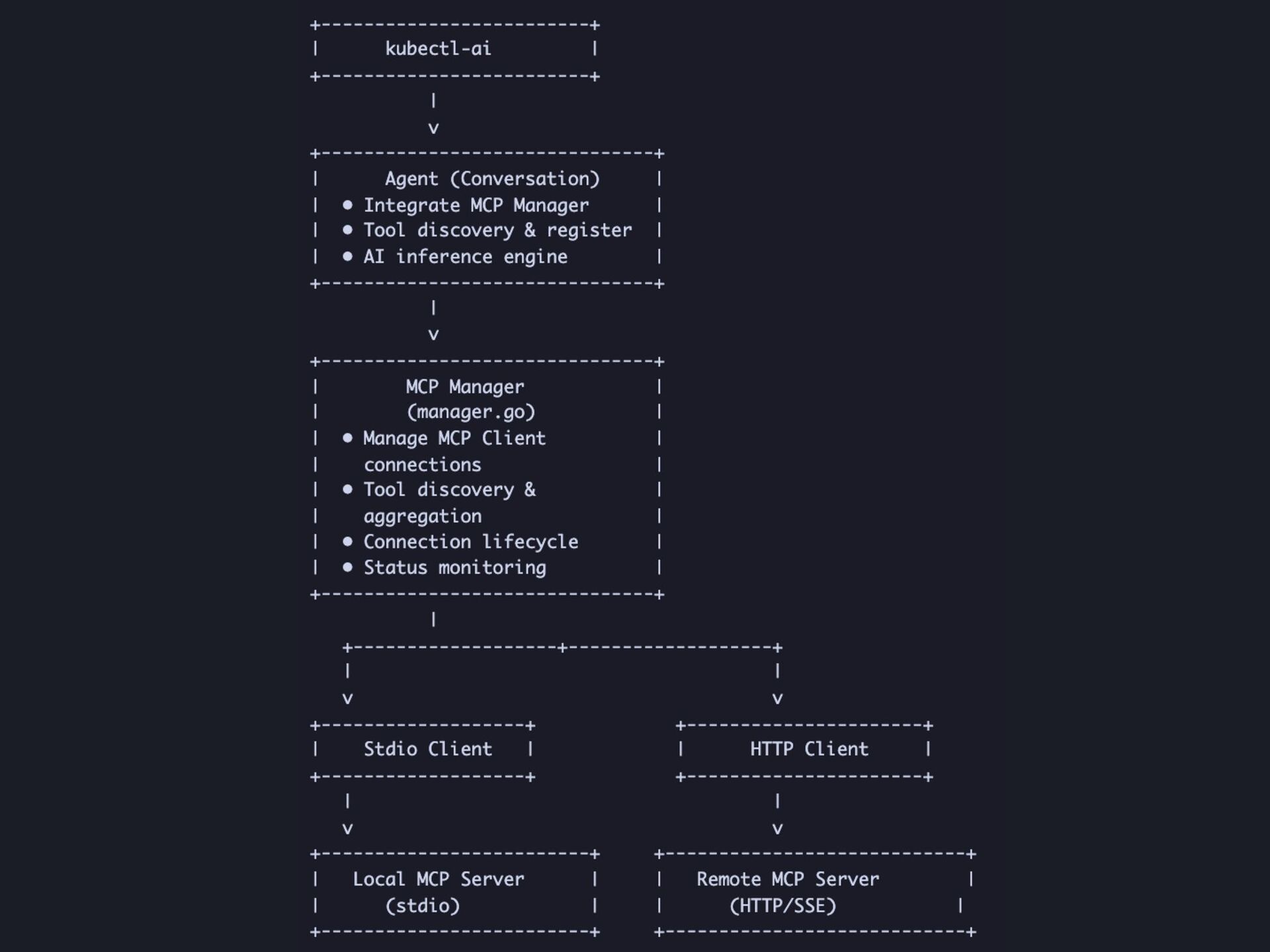 We will provide a detailed introduction to the core architecture of kubectl-ai, including its Agent dialogue management system, extensible tools framework, and the inventive application of the MCP (Model Context Protocol). The tool supports multiple LLM providers, ranging from Google Gemini to locally deployed models, and features a dual MCP mode design.