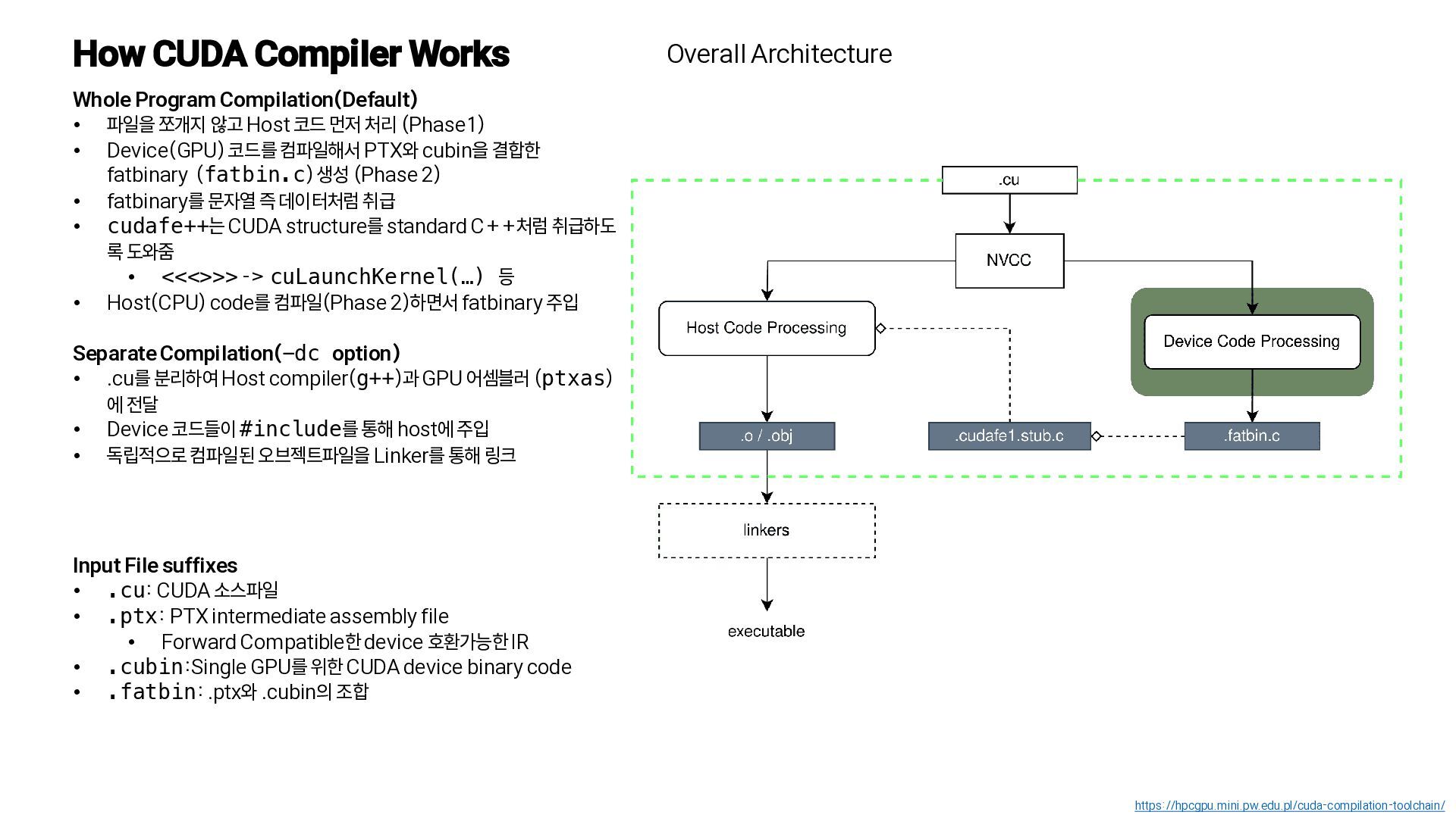 2. How CUDA Compiler Works https://hpcgpu.mini.pw.edu.pl/cuda-compilation-toolchain/ Whole Program Compilation(Default) • 파일을