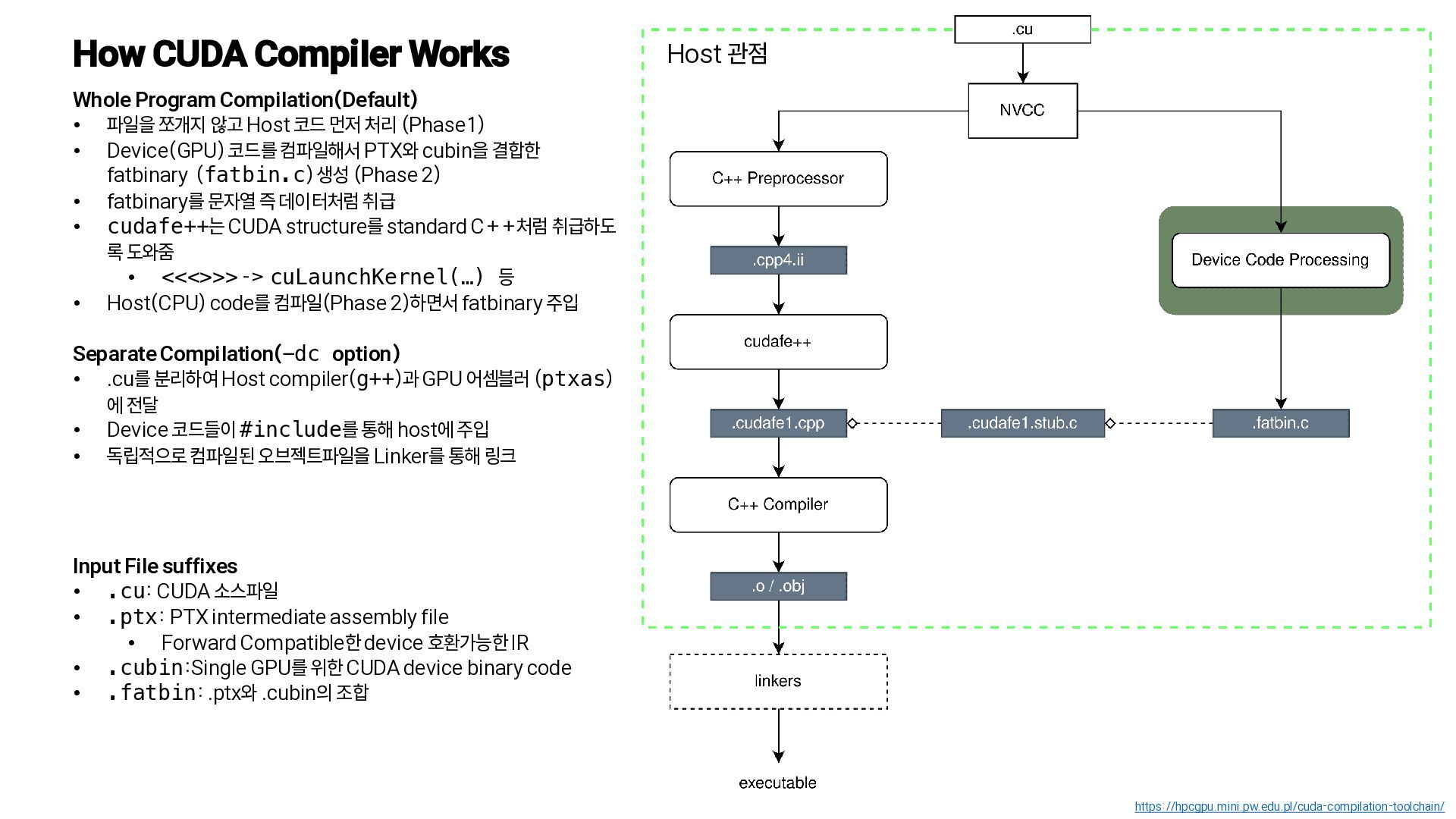 3. How CUDA Compiler Works https://hpcgpu.mini.pw.edu.pl/cuda-compilation-toolchain/ Host 관점 Whole Program Compilation(Default)