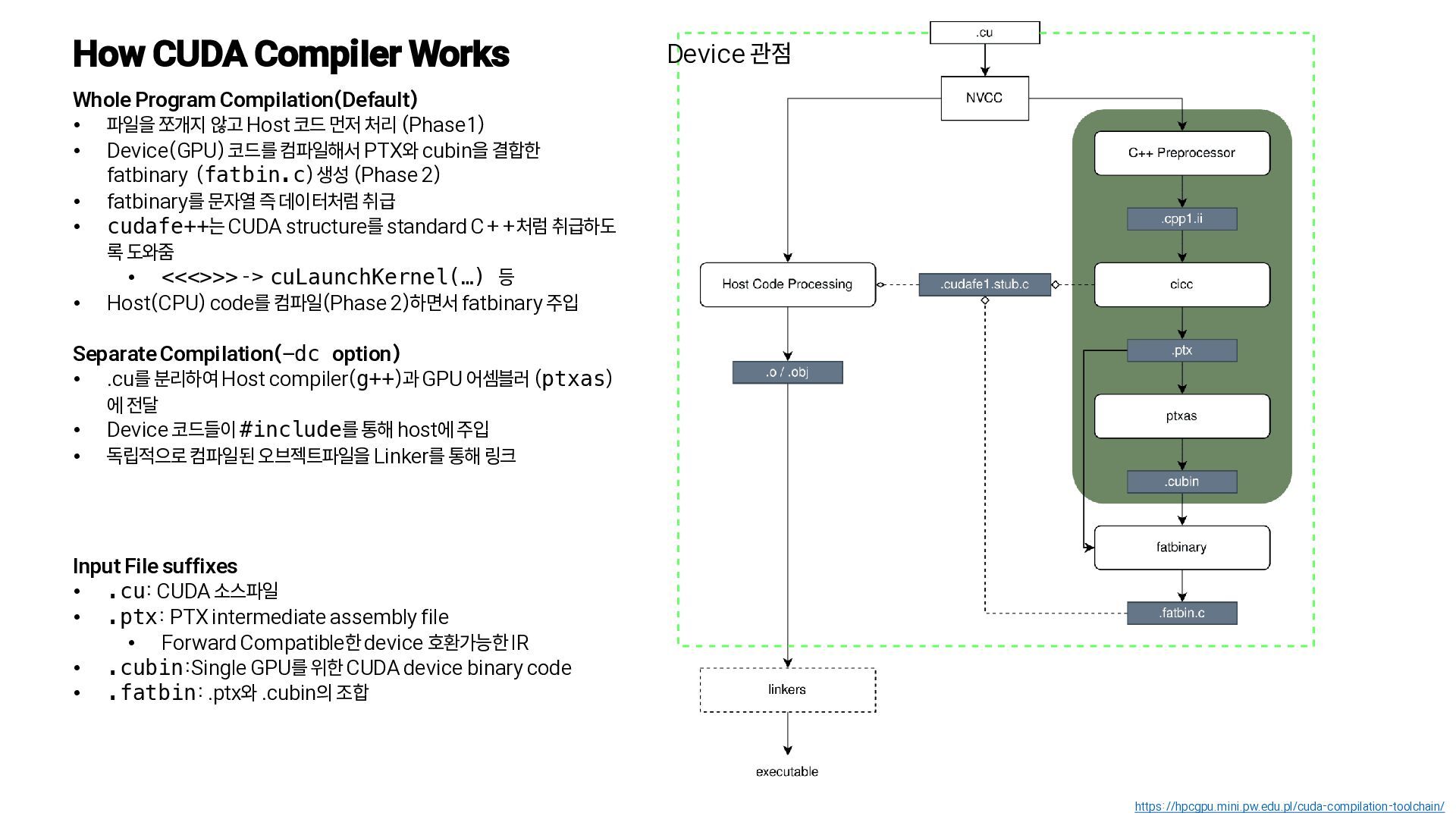 4. How CUDA Compiler Works https://hpcgpu.mini.pw.edu.pl/cuda-compilation-toolchain/ Device 관점 Whole Program Compilation(Default)