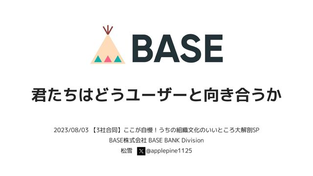 2023/08/03 【3社合同】ここが自慢!うちの組織文化のいいところ大解剖SP BASE株式会社 BASE BANK Division 松雪 @applepine1125 君たちはどうユーザーと向き合うか