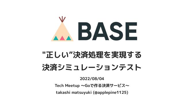 2022/08/04 Tech Meetup 〜Goで作る決済サービス〜 takashi matsuyuki (@applepine1125) "正しい”決済処理を実現する 決済シミュレーションテスト
