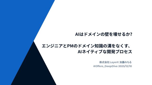 AIはドメインの壁を壊せるか? エンジニアとPMのドメイン知識の溝をなくす、 AIネイティブな開発プロセス 株式会社LayerX 加藤みちる #Offers_DeepDive 2025/12/10