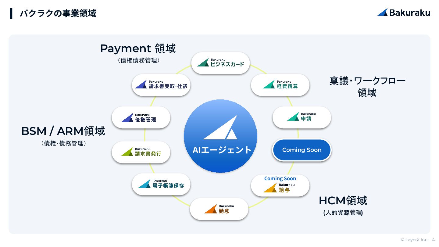 © LayerX Inc. 4 バクラクの事業領域 Coming Soon AIエージェント HCM領域 (人的資源管理)