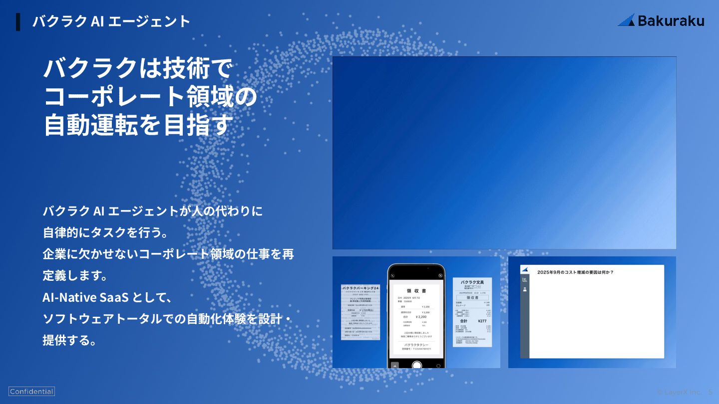 © LayerX Inc. 5 バクラク AI エージェント バクラクは技術で コーポレート領域の ⾃動運転を⽬指す