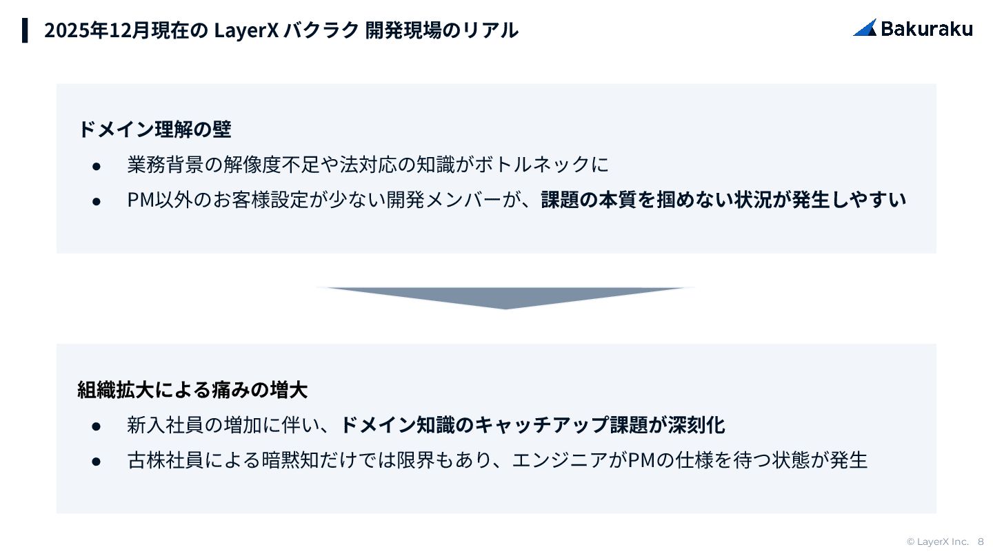 © LayerX Inc. 8 2025年12⽉現在の LayerX バクラク 開発現場のリアル ドメイン理解の壁 •
