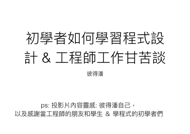 的課程不會練。 • 初學者可以先⽬目標台灣⼀一般的⼯工程師⼯工作,還是有很多