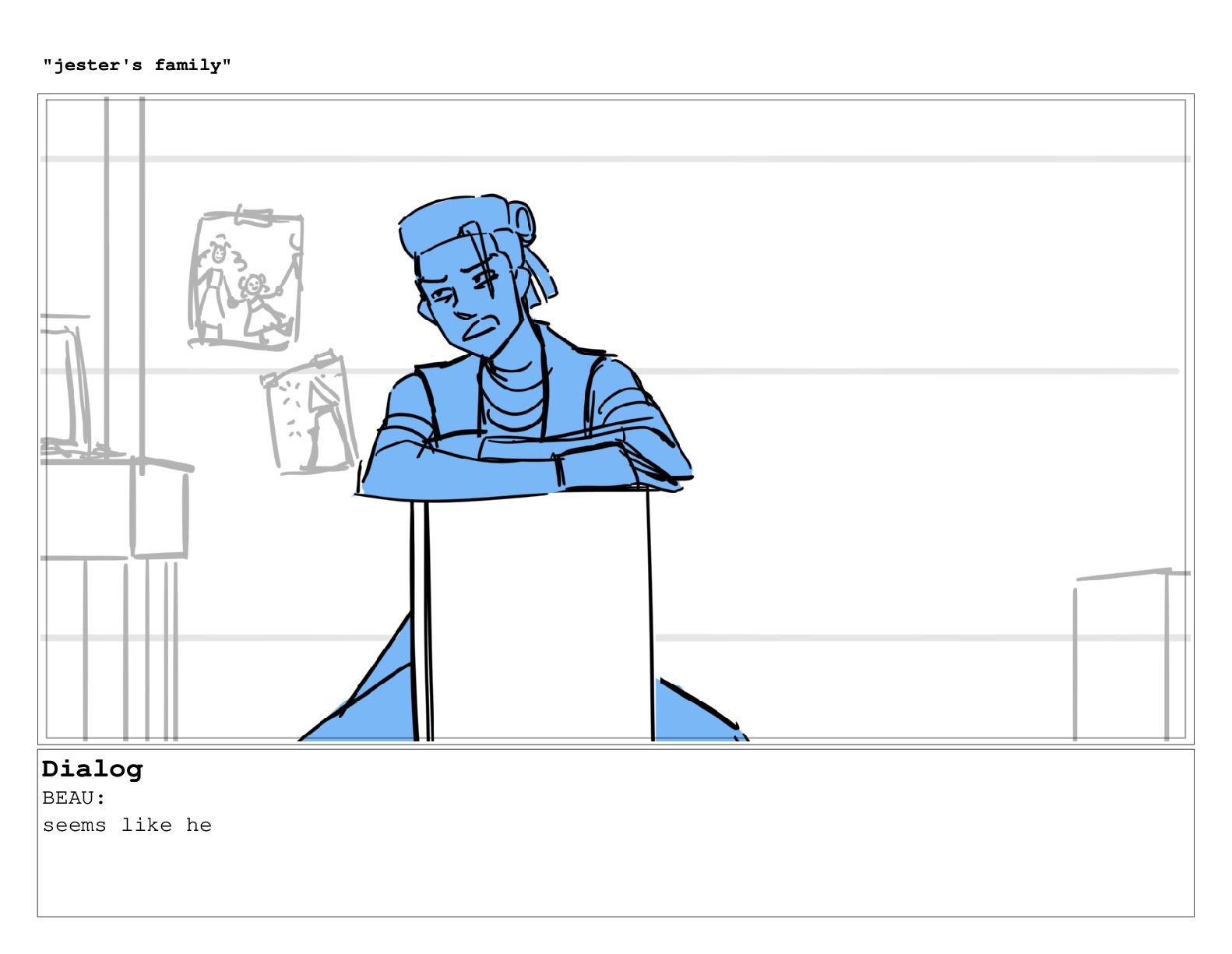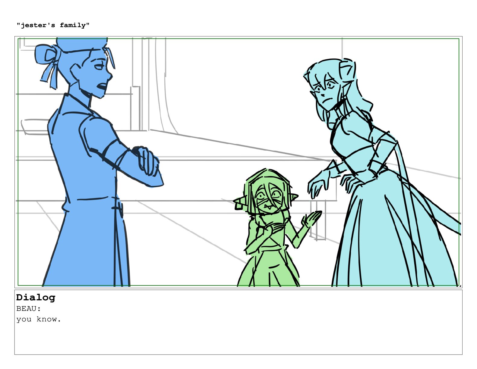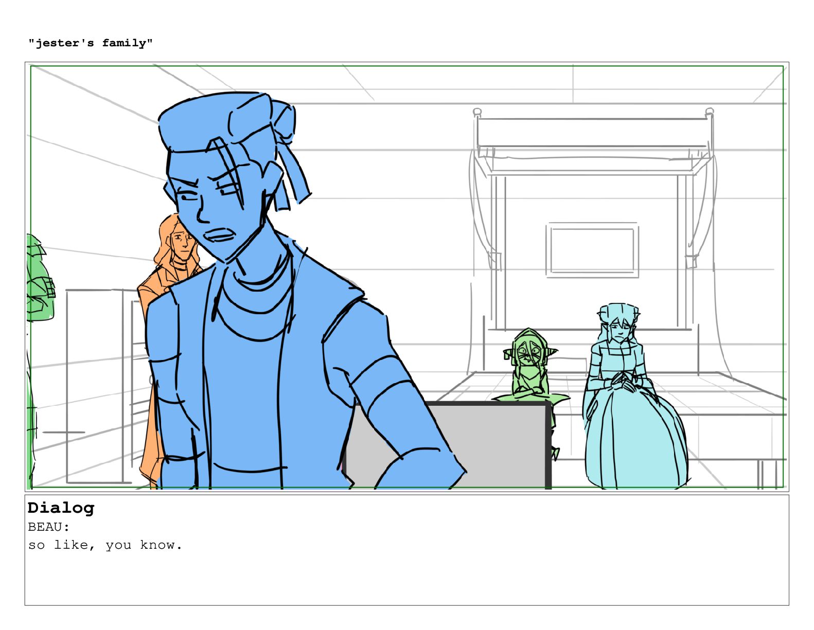 Dialog BEAU: so like, you know. "jester's family"