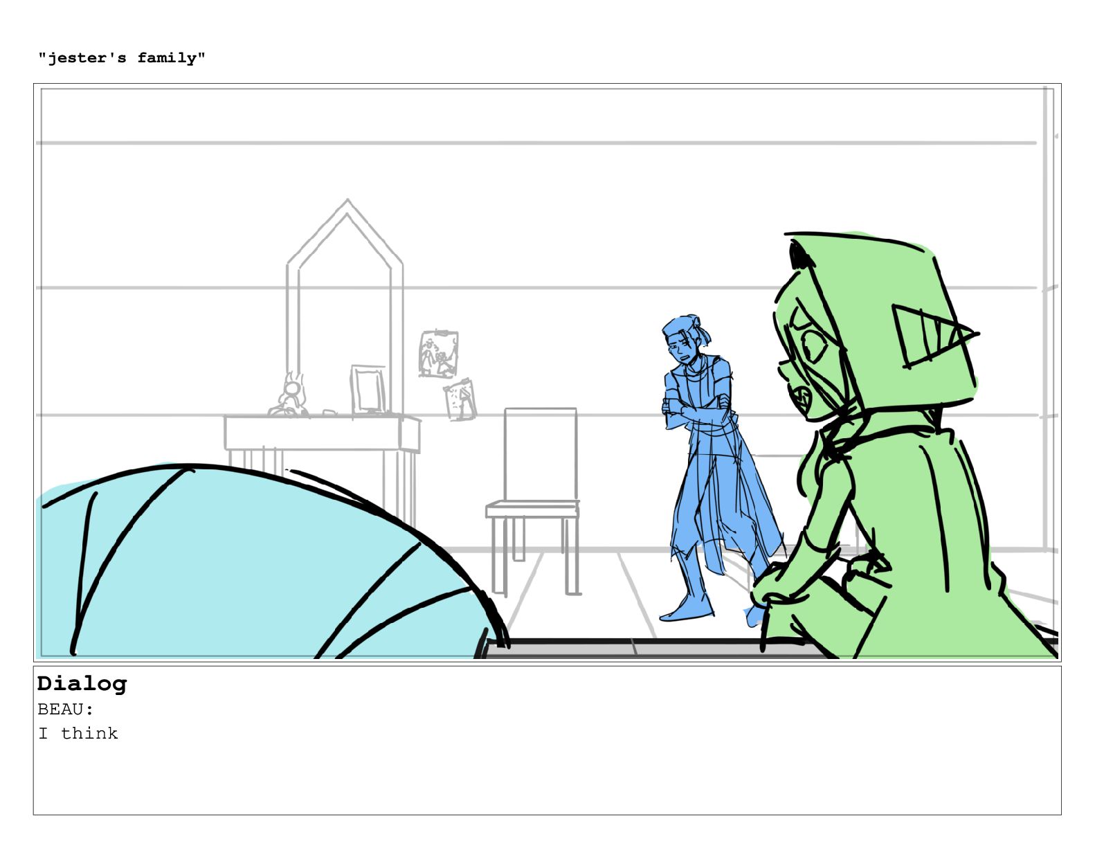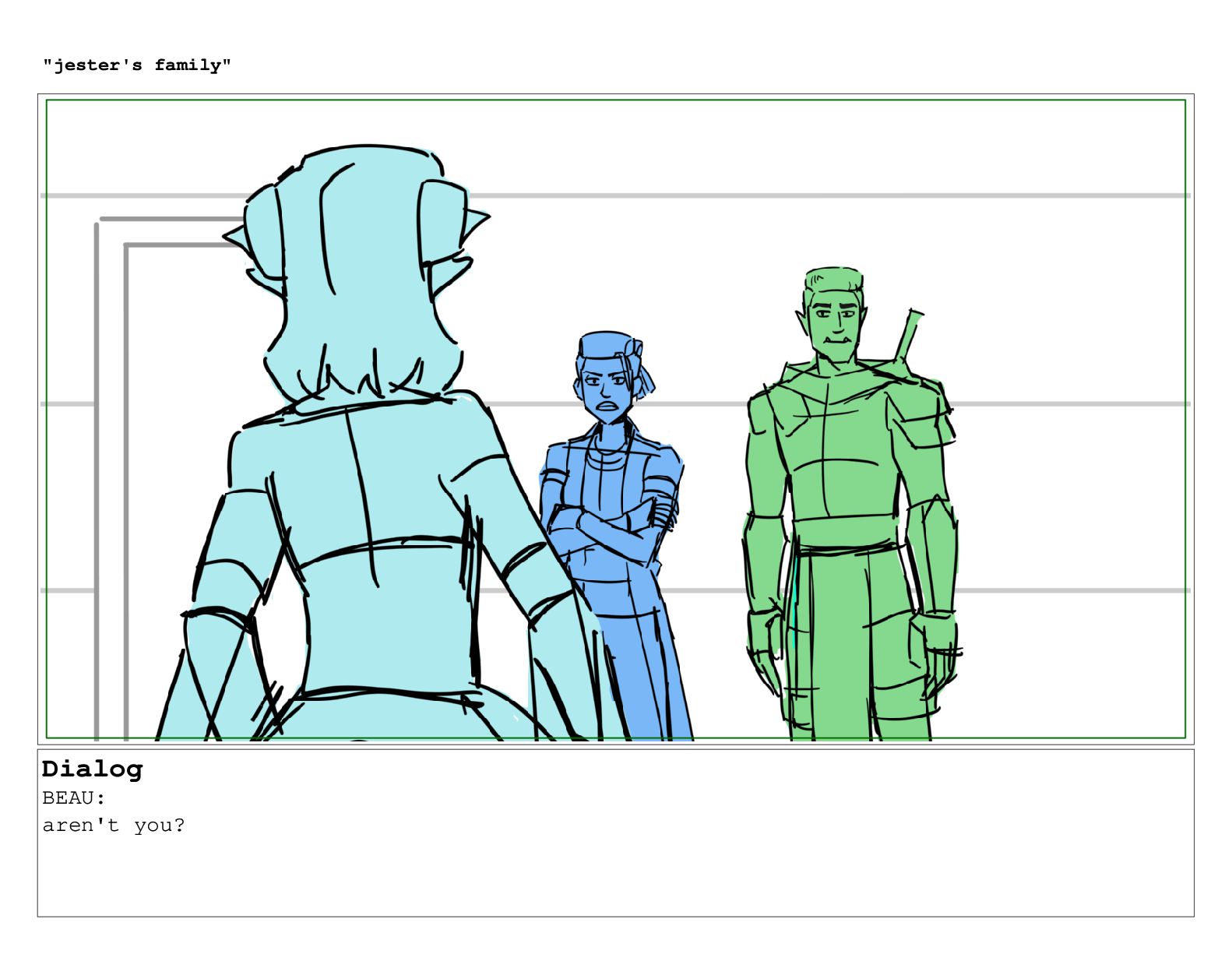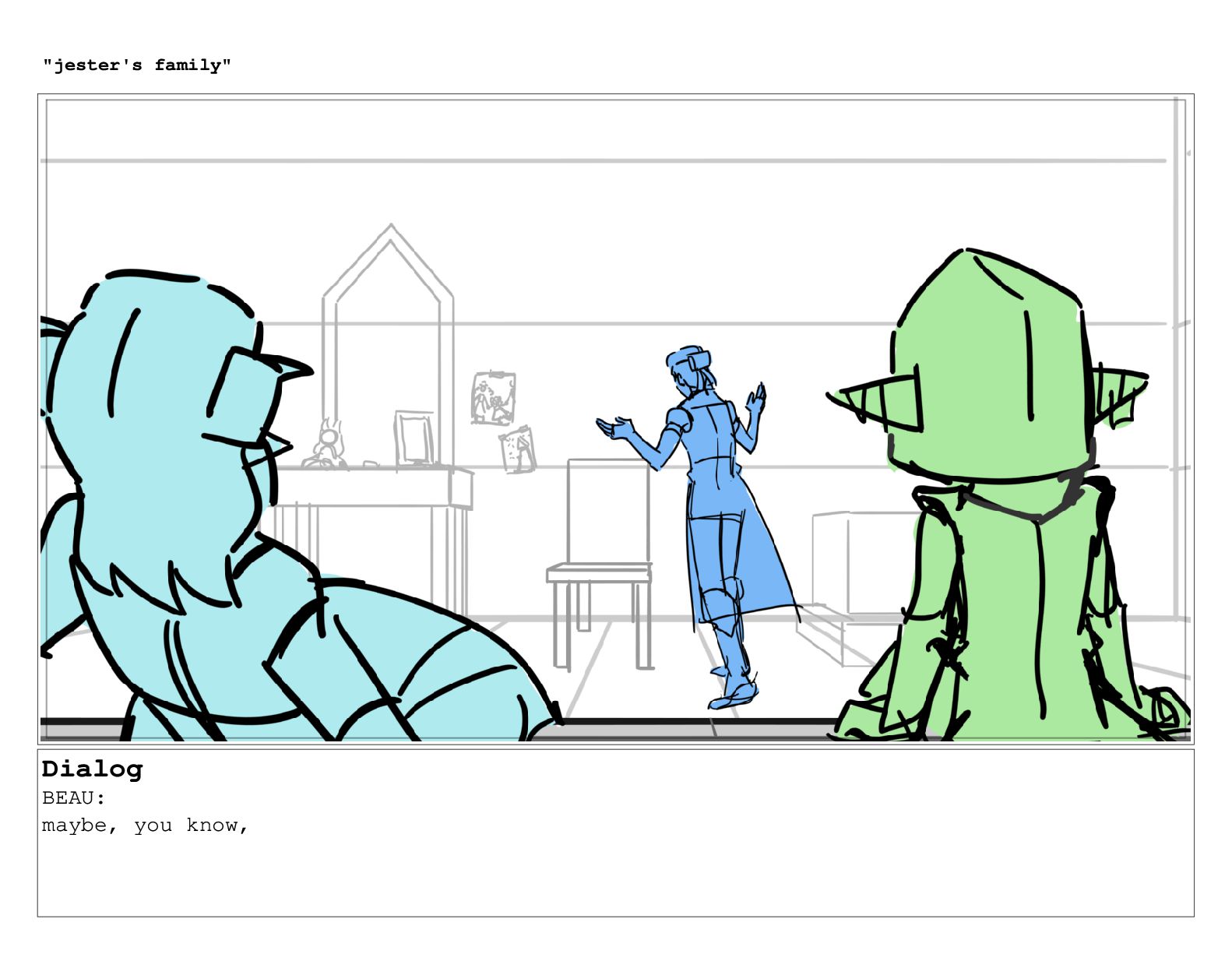 Dialog BEAU: so like, you know. "jester's family"