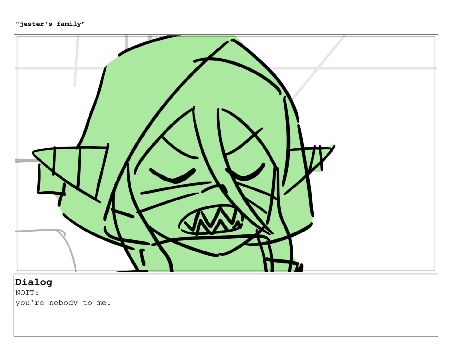 Dialog NOTT: you're nobody to me. "jester's family"