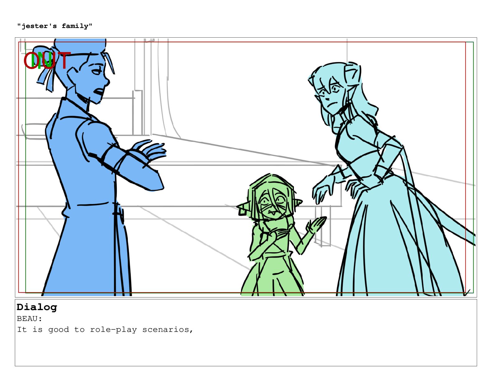 Dialog BEAU: It is good to role-play scenarios, "jester's family"