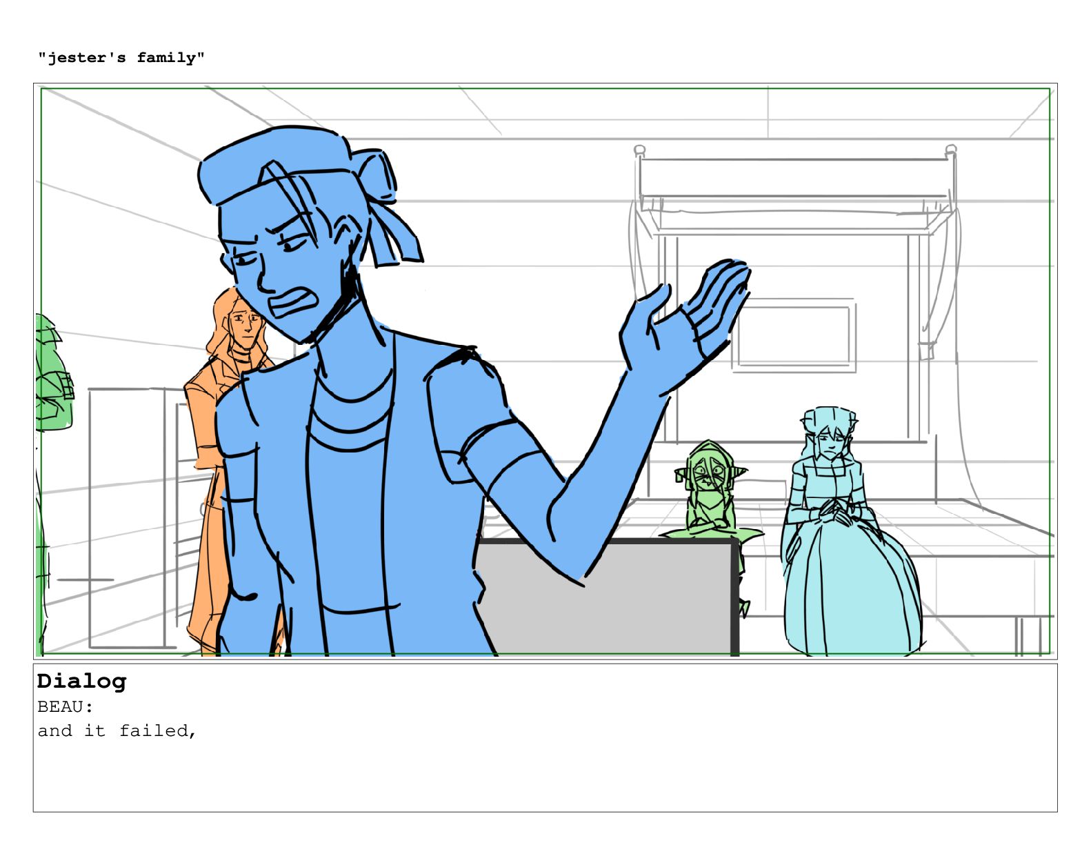 Dialog BEAU: and it failed, "jester's family"