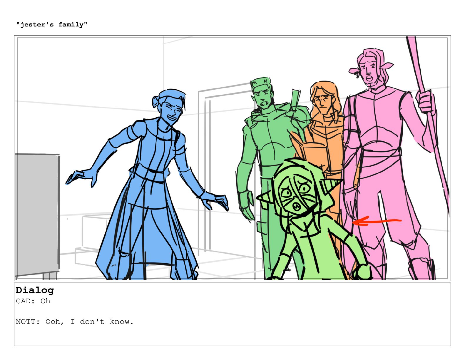 Dialog CAD: Oh NOTT: Ooh, I don't know. "jester's family"