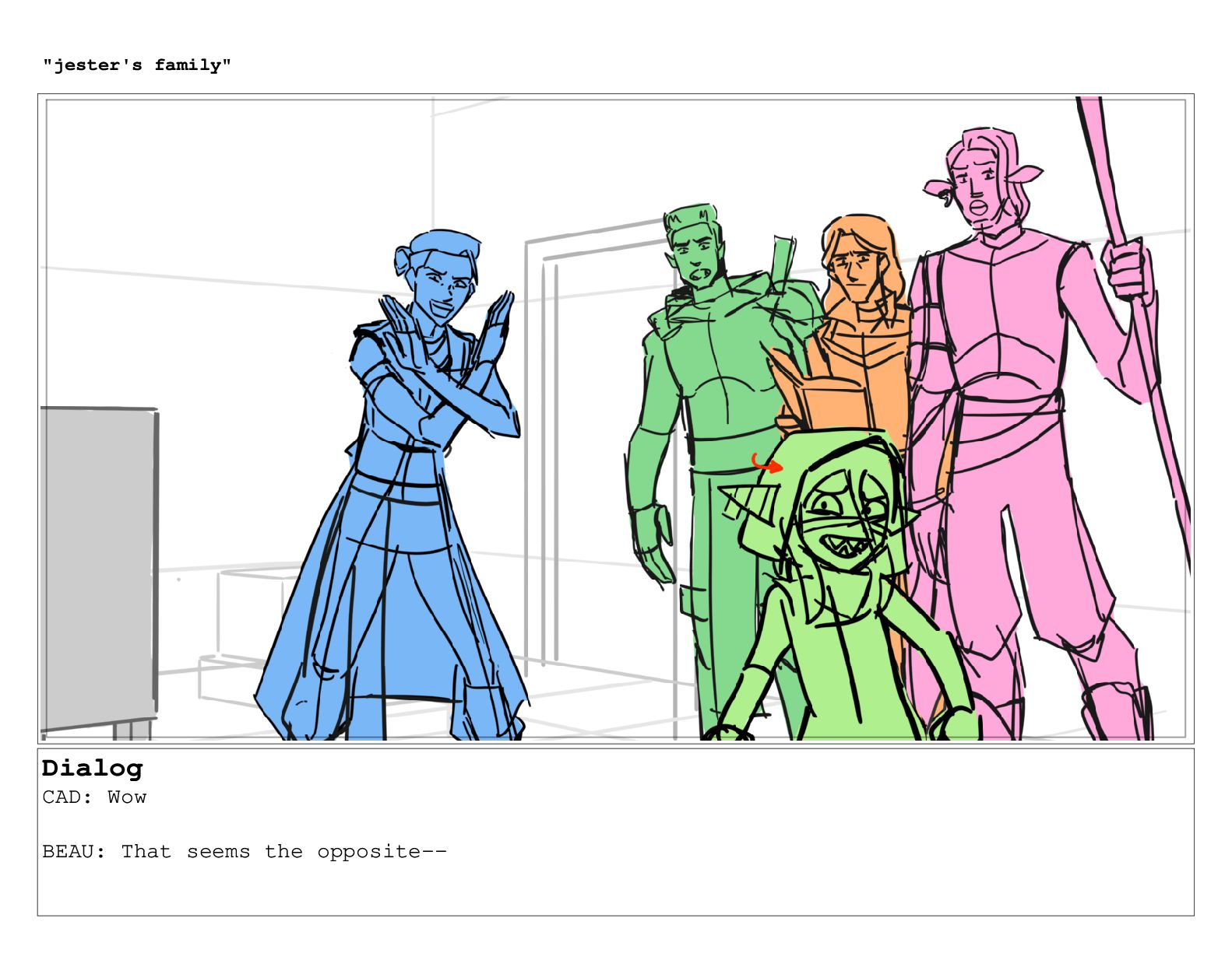 Dialog CAD: Wow BEAU: That seems the opposite-- "jester's family"