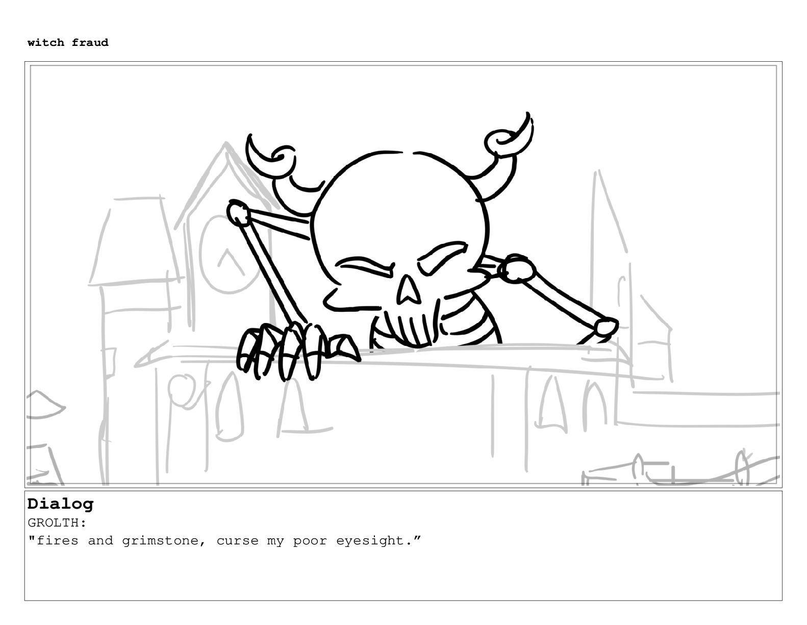 Dialog GROLTH: "fires and grimstone, curse my poor eyesight.” witch