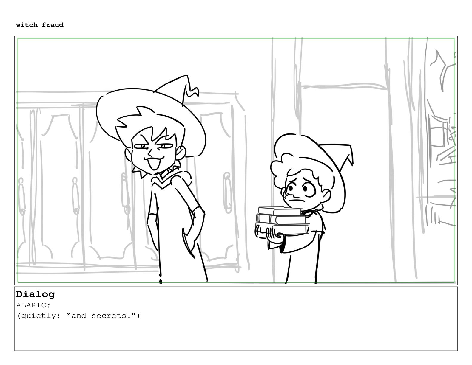 Dialog ALARIC: (quietly: “and secrets.”) witch fraud