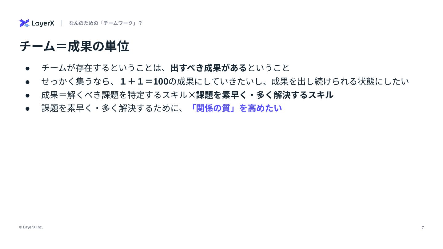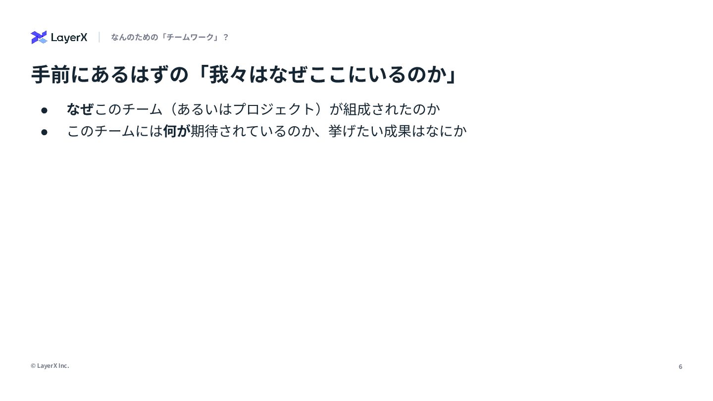 5. 13 © LayerX Inc. • チームとは、異なる特性を持つ、複数の個⼈の集まり • 特性が異なる ◦ =異なる価値観‧異なるバックグラウンドを持っている