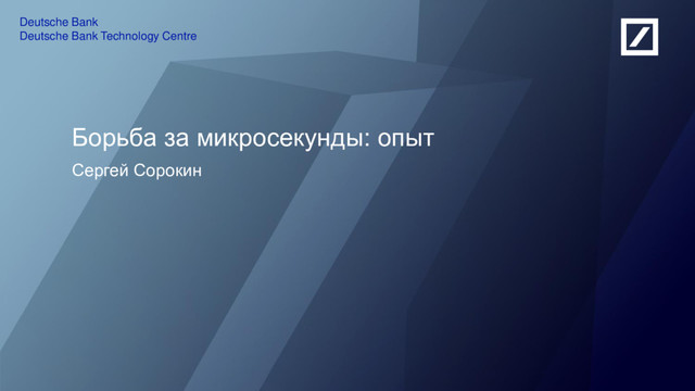 Bank Technology Centre Данный материал не является предложением или предоставлением какой-либо услуги. Данный материал предназначен исключительно для информационных и иллюстративных целей и не предназначен для распространения в рекламных целях. Любой анализ третьих сторон не предполагает какого-либо одобрения или рекомендации. Мнения, выраженные в данном материале, являются актуальными на текущий момент, появляются только в этом материале и могут быть изменены без предварительного уведомления. Эта информация предоставляется с пониманием того, что в отношении материала, предоставленного здесь, вы будете принимать самостоятельное решение в отношении любых действий в связи с настоящим материалом, и это решение является основанным на вашем собственном суждении, и что вы способны понять и оценить последствия этих действий. ООО “Технологический Центр Дойче Банка" не несет никакой ответственности за любые убытки любого рода, относящихся к этому материалу. 24 15/08/2017 2010 DB Blue template