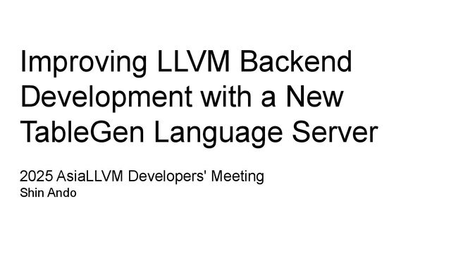 | 2025 AsiaLLVM Developers' Meeting Challenge #1: Limited Language Features • Limited set of language features implemented ◦ Supports: diagnostics, go to def, find refs, document link, hover ◦ Missing: completion, outline, rename, inlay hint, etc. • No new feature development since 2023 ◦ It appears that recent activity has focused on bug fixes and refactoring #8