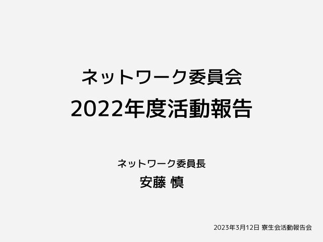ネットワーク委員会 2022年度活動報告 ネットワーク委員長 安藤 慎 2023年3月12日 寮生会活動報告会