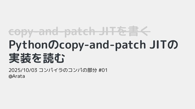 copy-and-patch JITを書く Pythonのcopy-and-patch JITの 実装を読む 2025/10/03 コンパイラのコンパの部分 #01 @Arata