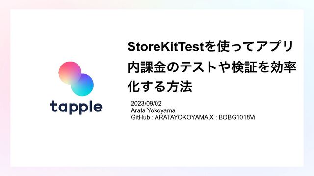 StoreKitTestΛͬͯΞϓϦ ՝ۚͷςετݕূΛޮ Խ͢Δํ๏ 2023/09/02 Arata Yokoyama GitHub : ARATAYOKOYAMA X