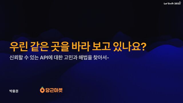 Let'Swift 2022에서 발표한 "우린 같은 같은 곳을 바라 보고 있나요?" 의 장표입니다.