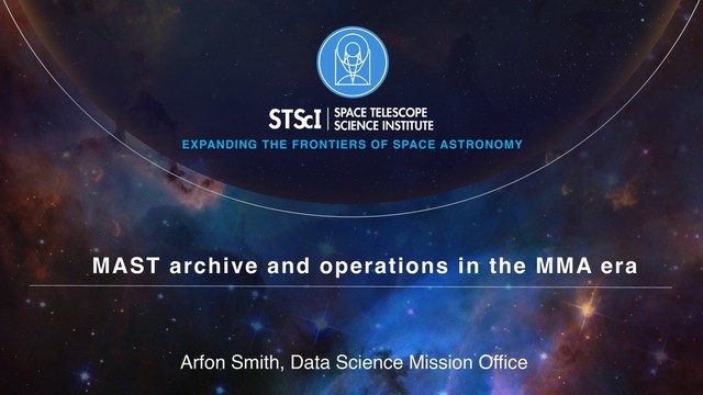 • Responsible for DMS portfolio for all missions (HST, JWST, Kepler/K2, TESS, WFIRST, etc.) • Exploring new technologies, services and infrastructure for data management • Developing community expertise in combining data science and astronomy STScI: Data Science Mission Office https://archive.stsci.edu/reports/BigDataSDTReport_Final.pdf