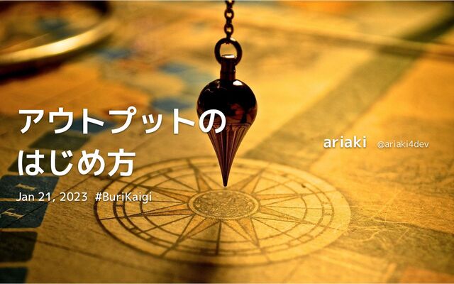 アウトプットの はじめ方 Jan 21, 2023 #BuriKaigi ariaki @ariaki4dev