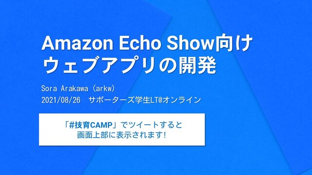 Amazon Echo Show向け ウェブアプリの開発 Sora Arakawa (arkw) 2021/08/26 サポーターズ学生LT@オンライン 「#技育CAMP」でツイートすると