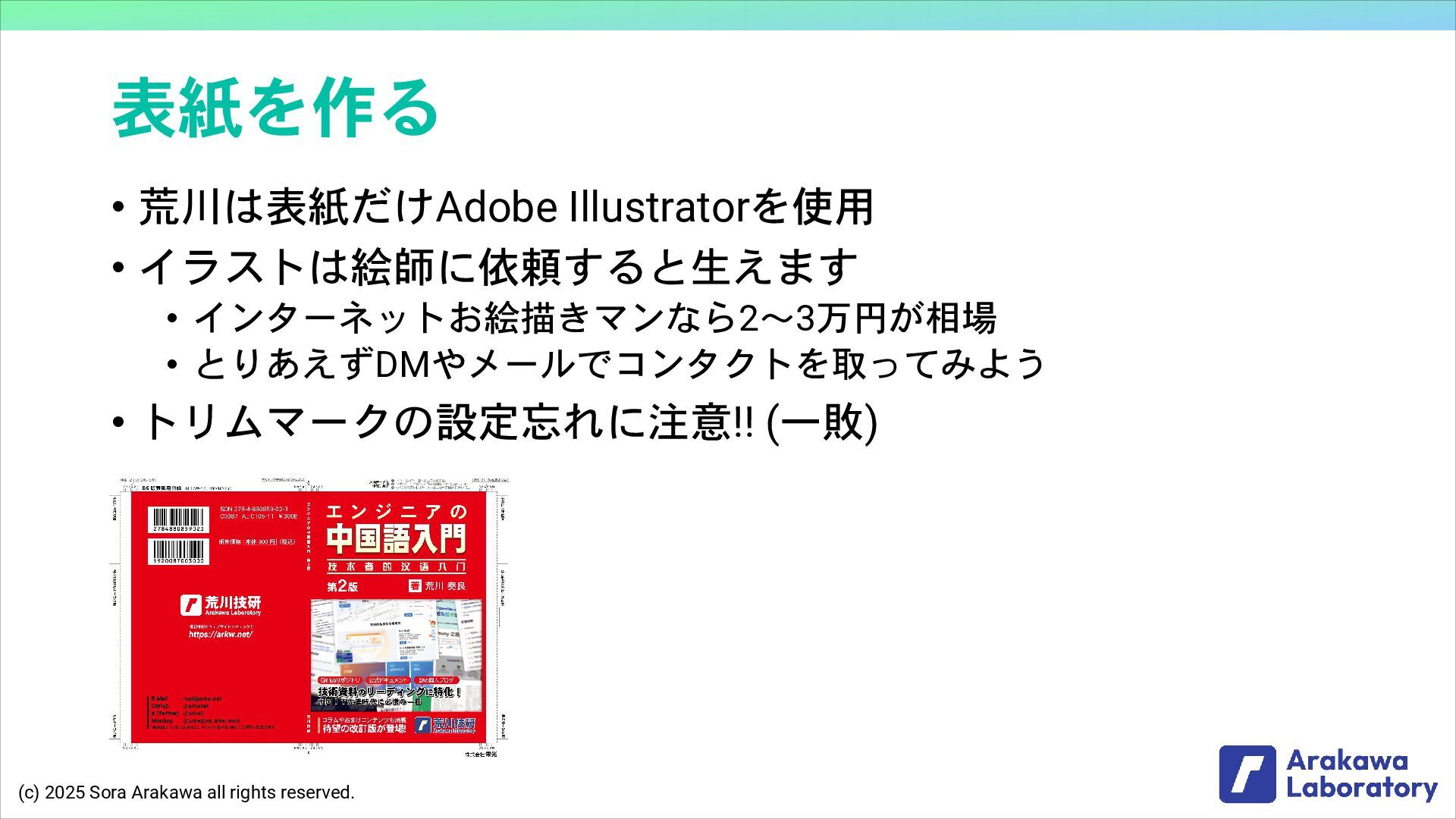(c) 2025 Sora Arakawa all rights reserved. 表紙を作る • 荒川は表紙だけAdobe