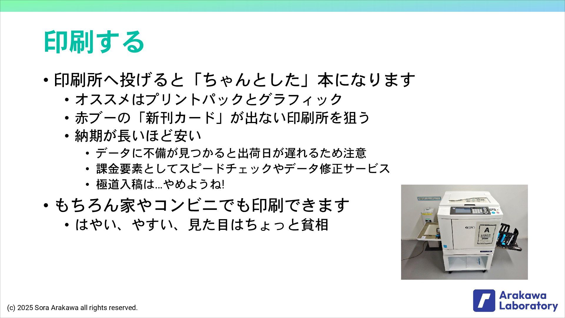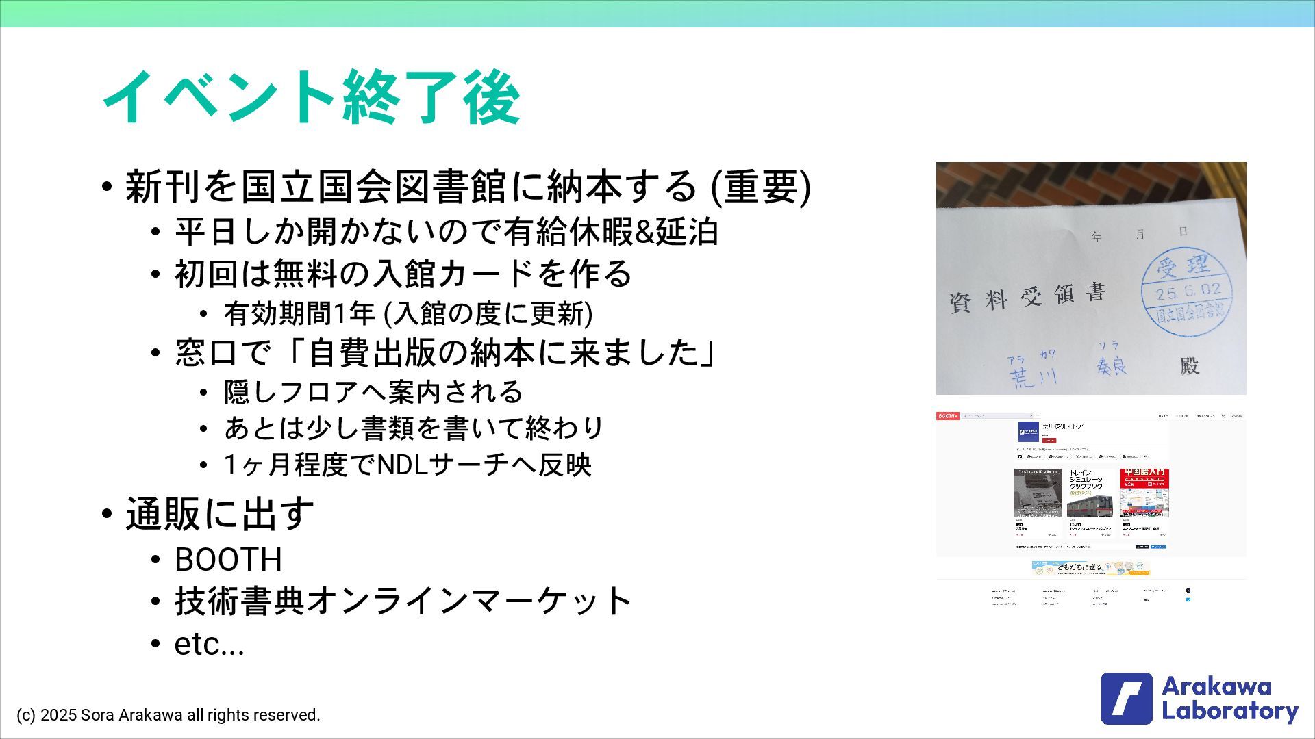(c) 2025 Sora Arakawa all rights reserved. イベント終了後 • 新刊を国立国会図書館に納本する