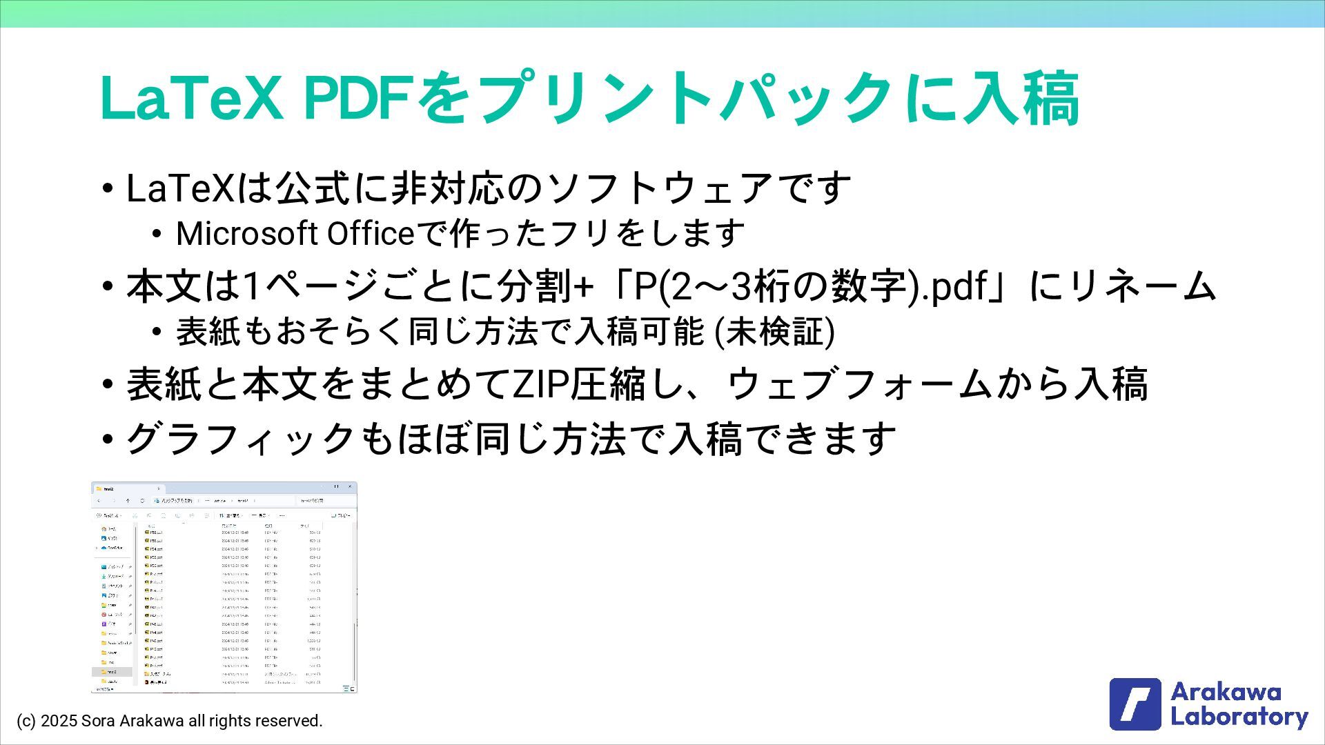 (c) 2025 Sora Arakawa all rights reserved. LaTeX PDFをプリントパックに入稿 •