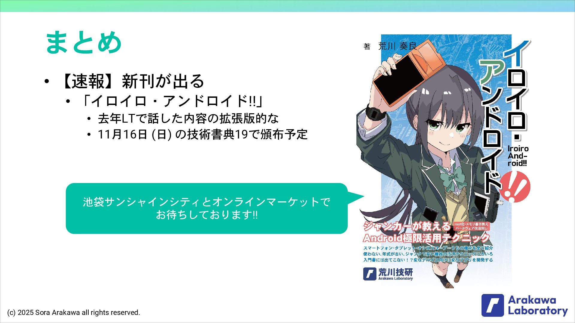 (c) 2025 Sora Arakawa all rights reserved. まとめ • 【速報】新刊が出る