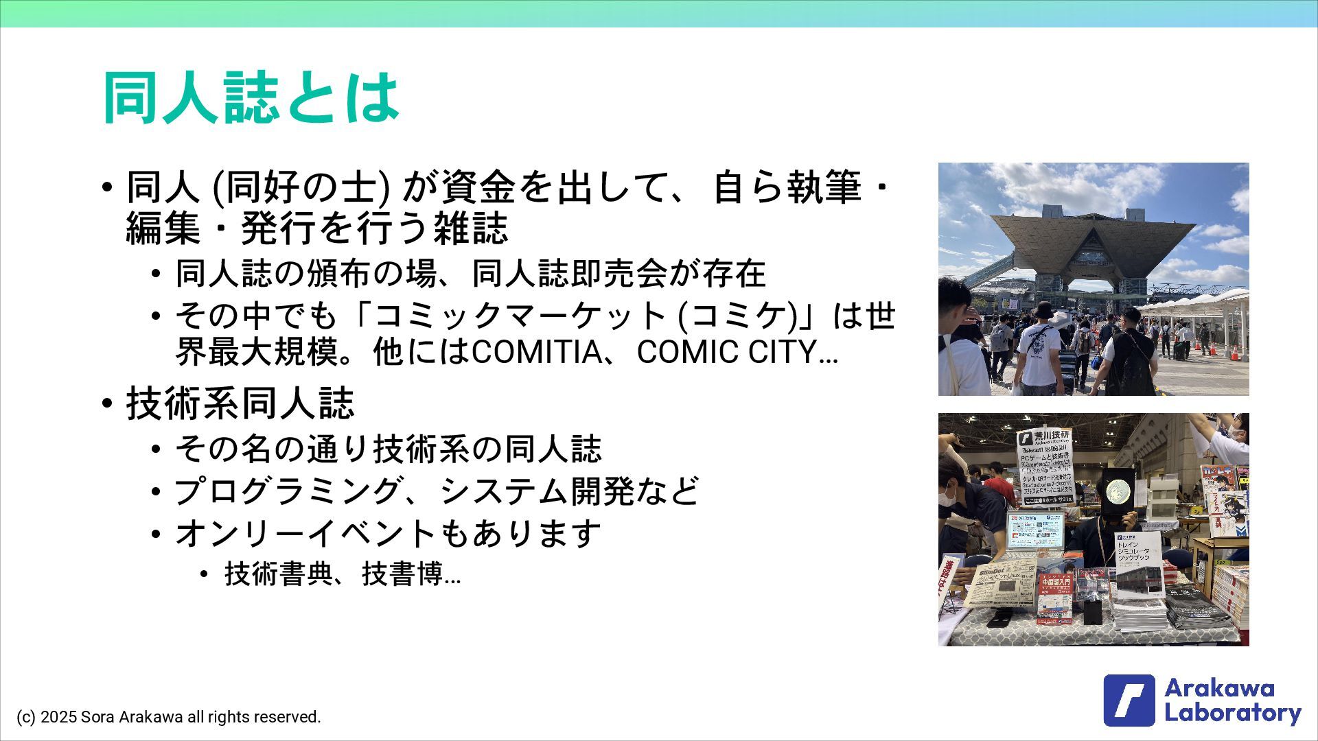 (c) 2025 Sora Arakawa all rights reserved. 同人誌とは • 同人