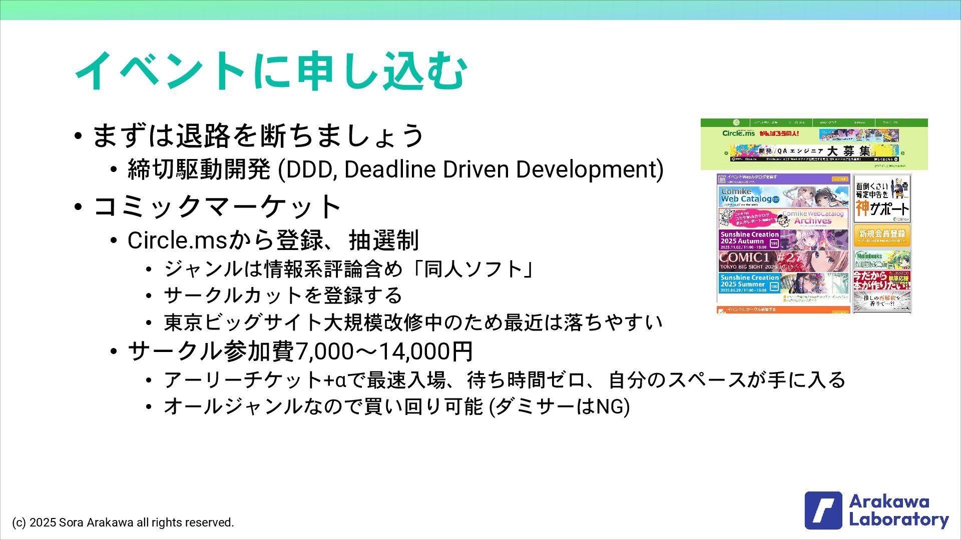 (c) 2025 Sora Arakawa all rights reserved. イベントに申し込む • まずは退路を断ちましょう