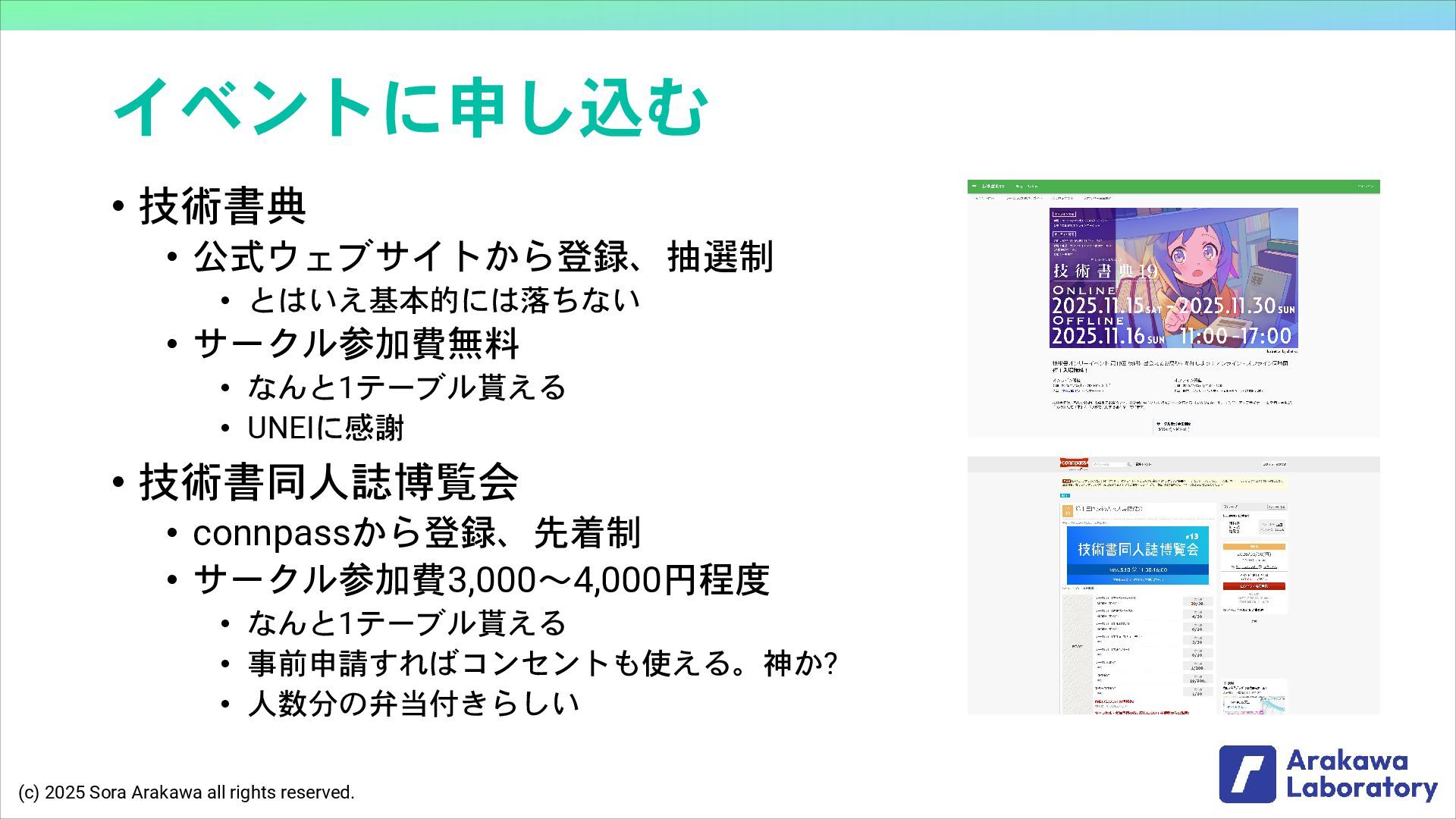 (c) 2025 Sora Arakawa all rights reserved. イベントに申し込む • 技術書典